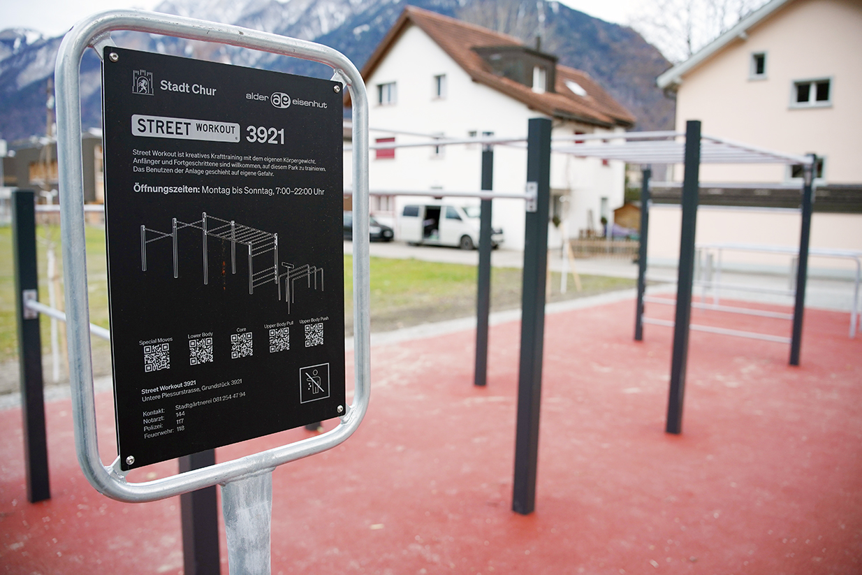 Street Workout setzt auf Übungen mit dem eigenen Körpergewicht – Kraft, Balance und Beweglichkeit werden an Stangen, Sprossen, Barren und weiteren Elementen trainiert. Die robuste Anlage ermöglicht sowohl Einsteigern wie auch Fortgeschrittenen abwechslungsreiche Workouts, von Klimmzügen und Dips bis zu anspruchsvollen Calisthenics-Übungen. QR-Codes vor Ort geben zusätzliche Inspiration und Trainingsideen. Dank der Lage an der Unteren Plessurstrasse ist die Anlage optimal erreichbar und eng mit dem Naherholungsgebiet am Rhein verbunden.